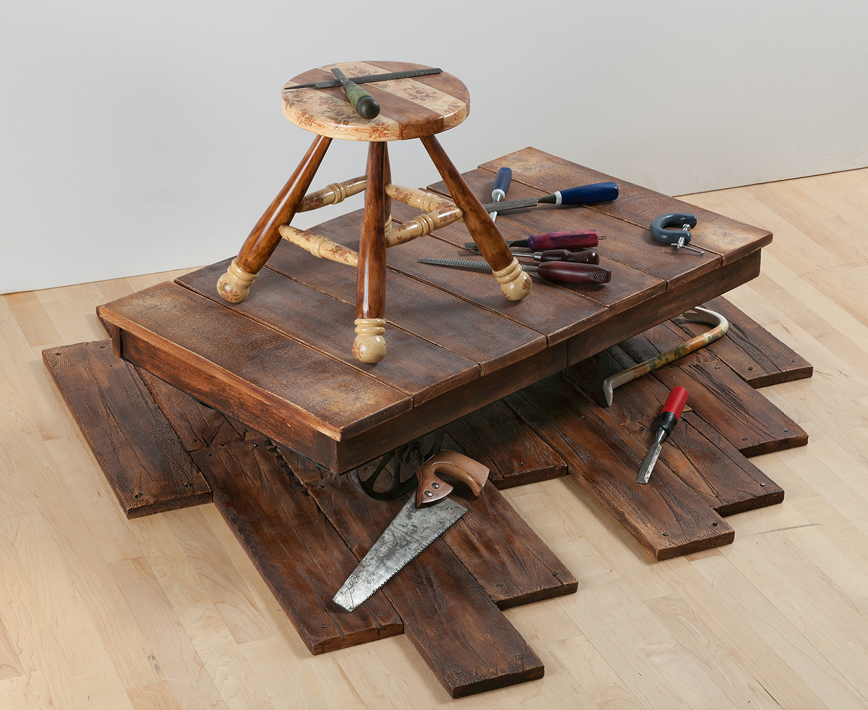 1)Trompe L’oeil, 2009, acrylic paint,metal,wood 50x42x38inch