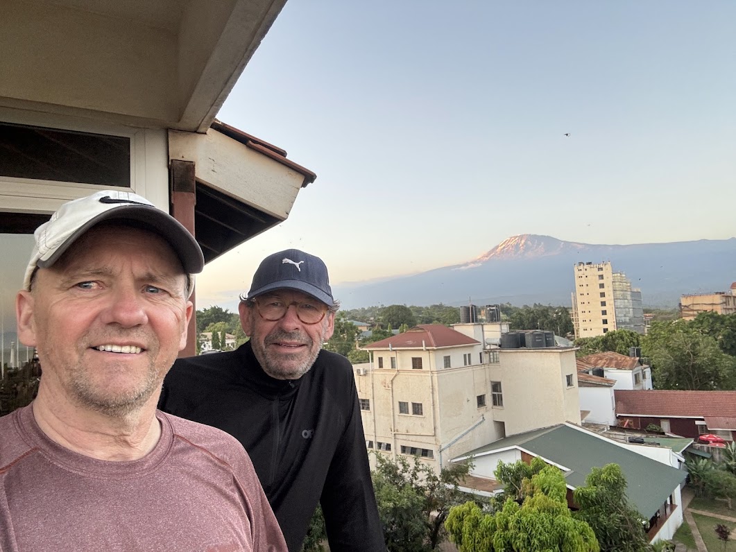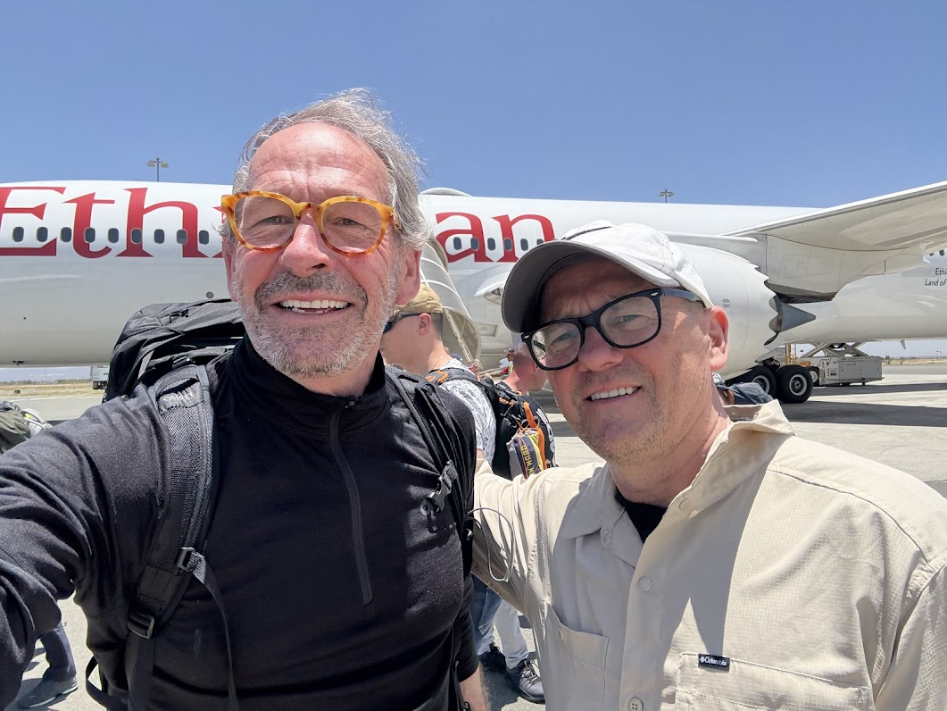 The author (left) and Marcel Asselin arrive at Kilimanjaro International Airport, three days before they begin their assult on Mount Kilimanjaro.