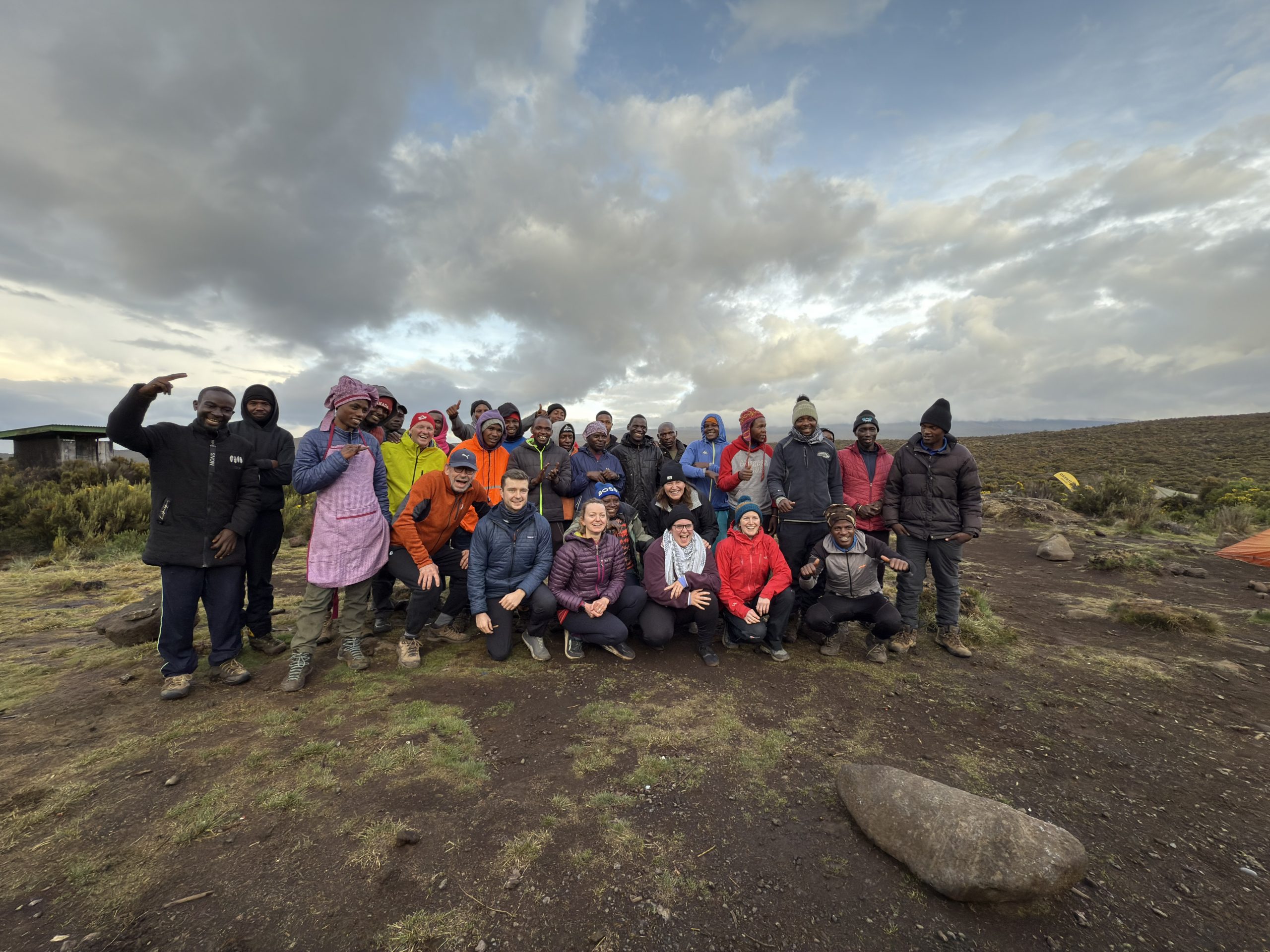 The group makes their way through the Kilimanjaro rainforest on their first day of hiking.
