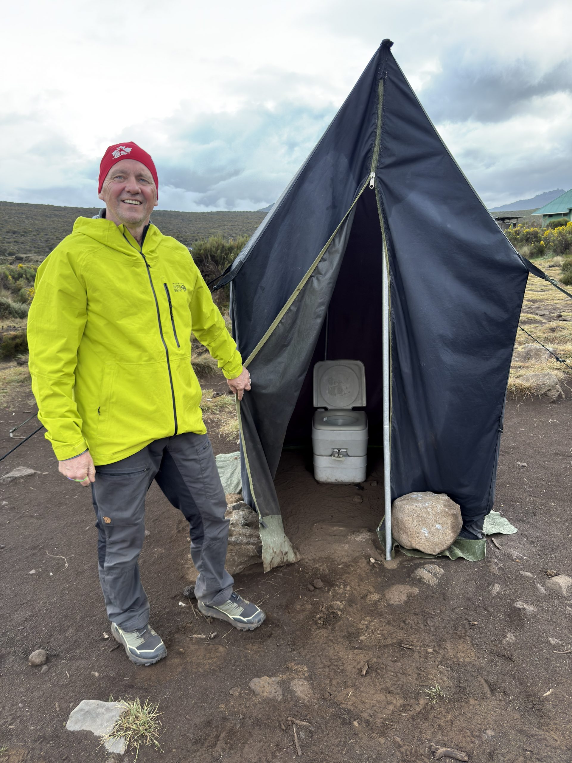 Asselin pulls back the cover on the camp toilet, affectionately known as the Wizard of Pooz.